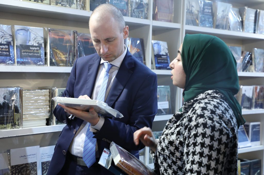 وتركز اهتمام الزوار في اليوم الخامس من المعرض بمجموعة مختلفة من الكتب والإصدارات، على رأسها: كتاب “إسرائيل من الداخل” الذي يتناول النظام السياسي الإسرائيلي بكل تعقيداته، بالإضافة إلى نظرية الأمن والمؤسسة العسكرية. ويليه كل من؛ كتاب “تحولات القرن الأفريقي.. إعادة تشكيل الإقليم” الذي يجاوب على عدد من الأسئلة حول تقييم عملية التحول الجرية في منطقة القرن الأفريقي وتحديد إلى أي مدى تتوافق وتتباين هذه التحولات بالإضافة إلى ماهية ملامح الإقليم بعد إتمام عملية إعادة التشكيل، وكتاب “داعش بعد عقد.. إلى أين يتجه التنظيم؟” الذي يدرس تنظيم “داعش” بشكل معمق بعد مرور عقد على ظهوره، والأسباب التي مكنت التنظيم من البقاء رغم خسارته المكانية، وكتاب “إيران التي لم نعرفها بعد!” الذي يهتم بدراسة أهم العناصر الهيكلية ذات التأثير الأعمق في السياسات الإيرانية، بالإضافة إلى كتاب “عسكرة التفاعلات.. تحولات الحروب والأسلحة” الذي يعتبر مرآة عاكسة لمختلف التفاعلات الدولية، ويسلط الضوء على احتدام ظاهرة العسكرة في العلاقات الدولية المعاصرة.