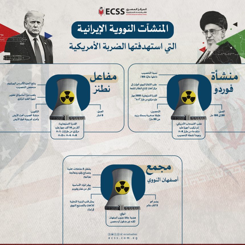 انفوجراف يوضح الأسلحة الأمريكية المستخدمة في ضرب المنشآت النووية الإيرانية، وتفاصيل القاذفة…